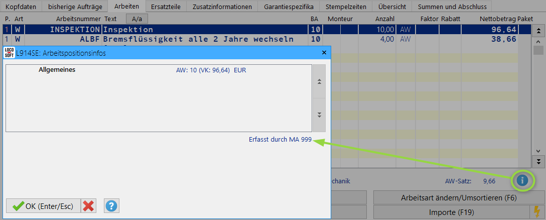 Die Positionsinformationen bleiben nun auch dann vollständig erhalten, wenn eine Änderung der Arbeitsart (z.B. "G" auf "W") vorgenommen wird. Diese Verbesserung gewährleistet, dass alle wichtigen Details den Monteuren in der App unverändert zur Verfügung stehen.